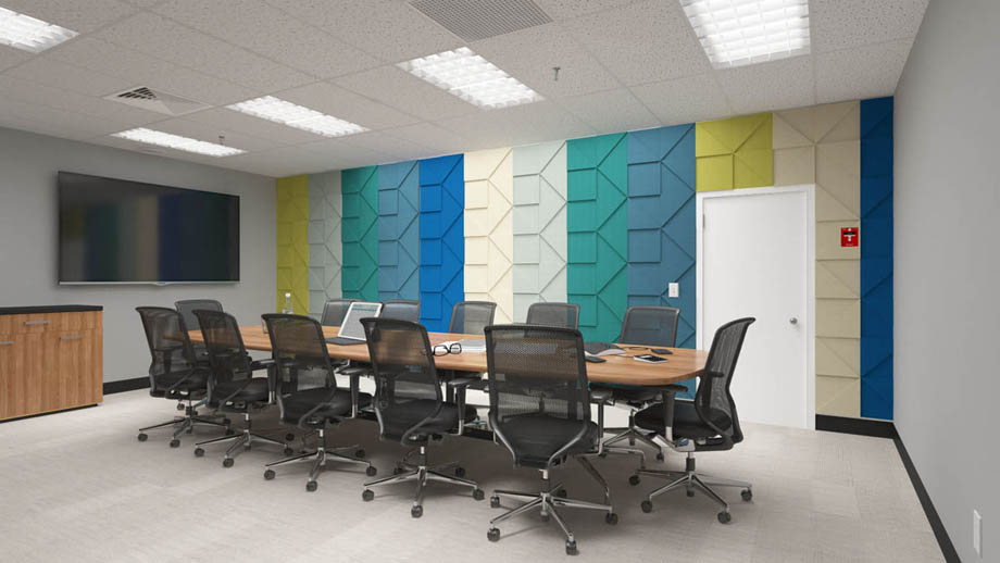 Conference rooms are a crucial part of most office environments, but they are not typically designed with sound in mind, instead incorporating flat walls and large, hard conference tables. These surfaces reflect sound, creating echo and reverberation and leading to issues with sound quality and clarity, which in turn can lead to unproductive communication, wasted meetings, and frustrating conference calls.