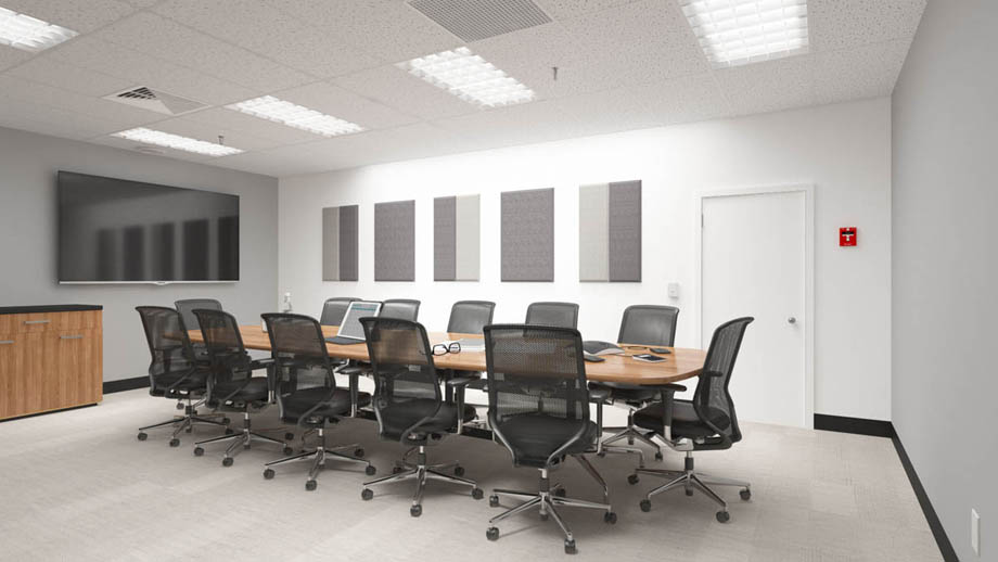 Conference rooms are a crucial part of most office environments, but they are not typically designed with sound in mind, instead incorporating flat walls and large, hard conference tables. These surfaces reflect sound, creating echo and reverberation and leading to issues with sound quality and clarity, which in turn can lead to unproductive communication, wasted meetings, and frustrating conference calls.