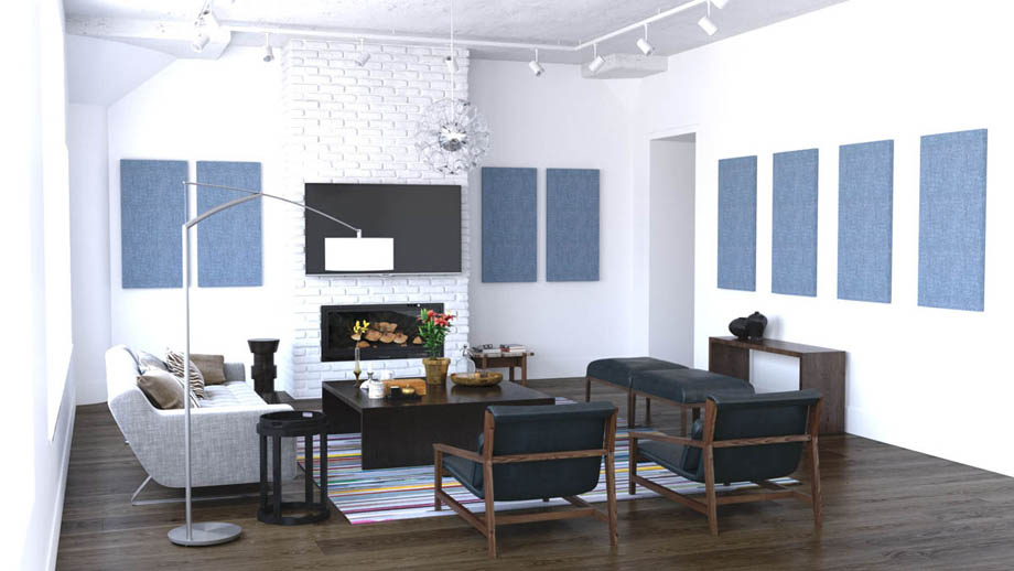 Do you have a living room, recreational space, dining room, or hallway where the echo of conversations and other sounds become a distraction? You can reduce unwanted noise at home with our acoustic room treatments for walls and for ceilings. Made from all-natural materials, our standard and custom acoustic room treatments absorb sound waves, preventing the echoes and reverberation that cause much of the unwanted noise at home. If you need to a solution to help block sound from entering or exiting a room, check out our Sound Barriers.